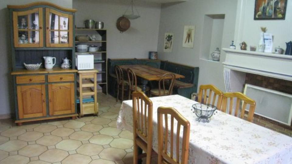Gîte indép.(260 m²) dans une ancienne ferme XVIIIe. RDC : entrée, salon (biblio.), TV. Cuisine (congél). Séjour avec cheminée. Laverie. WC, Salle d'eau. ETAGE : 4 chambres (5 lits 1 pers, 2 lits 2 pers). 1 salle de bains, 2 salles d'eau/WC. Chauff. élect (Charges non comprises). Location chambre supplémentaire : 50€/semaine. Garage.