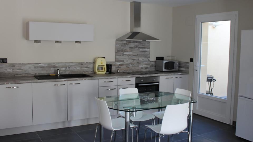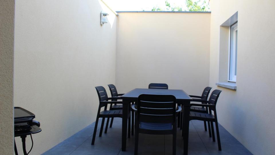 Vaste pièce de jour (50 m²) lumineuse et ouverte, 3 chambres (1 lit 140x190 et 4 lits 90x190), salle d'eau, WC ind. Une terrasse de 12 m² sur l'avant, une terrasse close de 15 m² sur l'arrière accessible depuis la partie cuisine. Stationnement 2 voitures sur le côté de la maison. Draps fournis, lits faits à l'arrivée. Chauffage au sol par pompe à chaleur, chauffe-eau thermodynamique, charges non comprises. Accès internet filaire et wifi.
