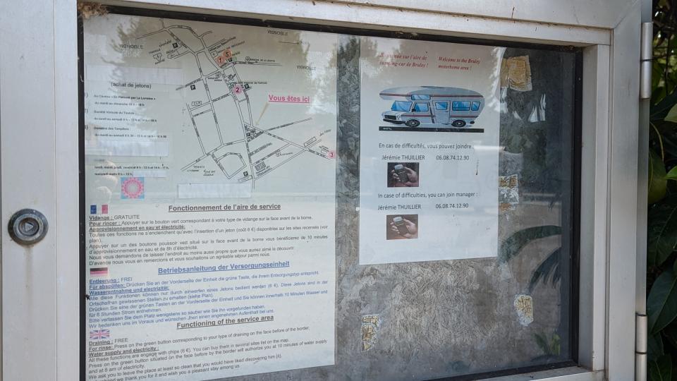 Située au coeur du vignoble lorrain des Côtes de Toul, la commune de Bruley a mis en place une borne de ravitaillement pour camping- cars. Installée sur une place en capacité d'accueillir une dizaine de camping-cars, l'aire de service en inox permet aux utilisateurs de se ravitailler en eau et électricité et de vidanger leurs eaux usées.